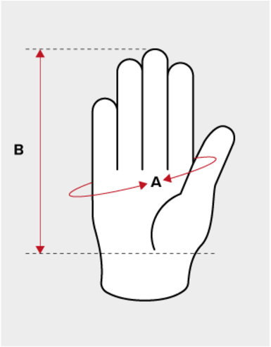 Rozłóż dłoń na płasko i zmierz obwód dłoni w najszerszym miejscu (tak jak na rysunku), nie uwzględniając kciuka.